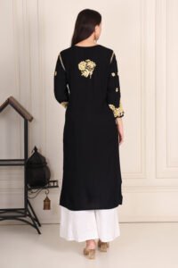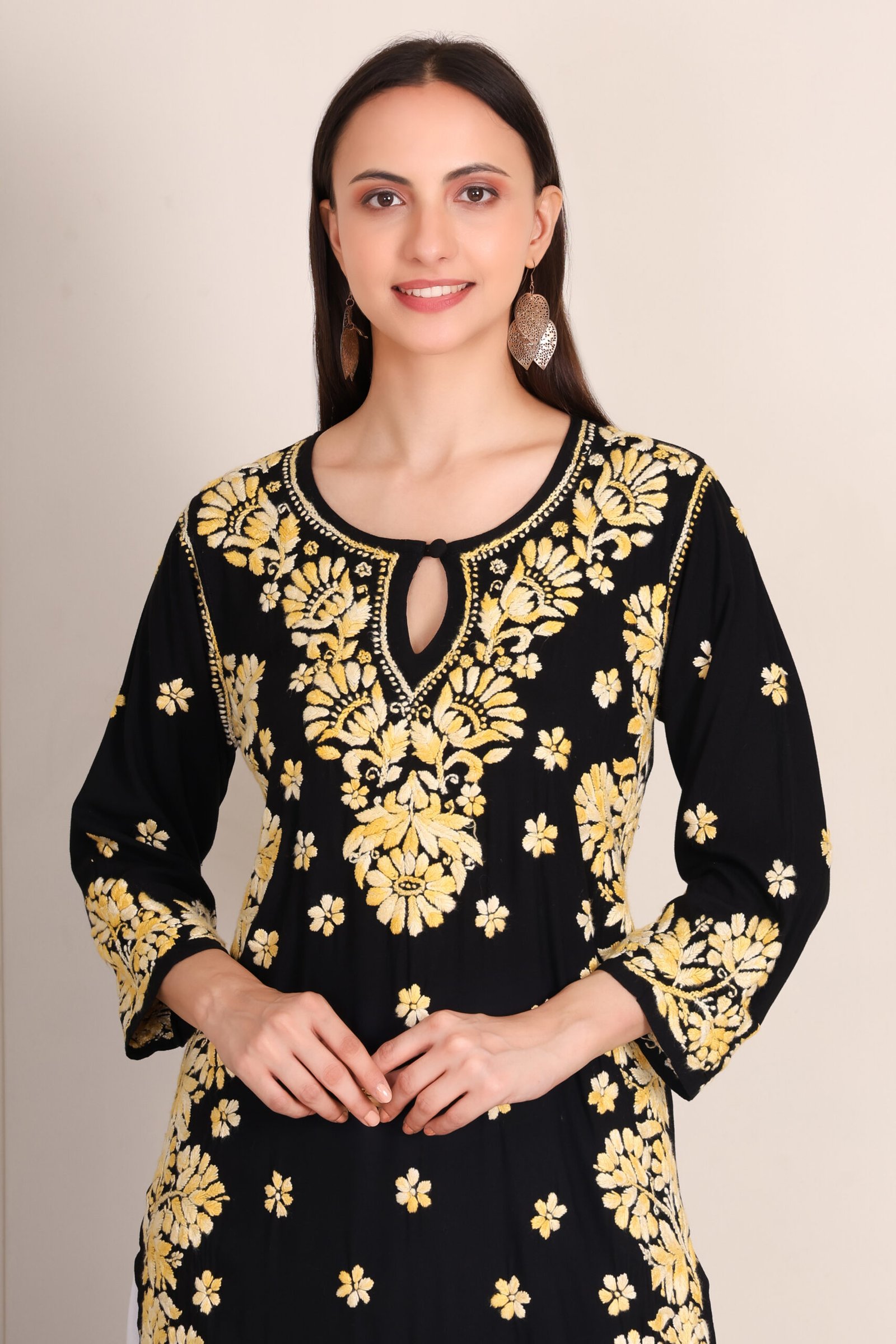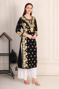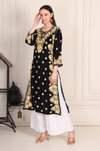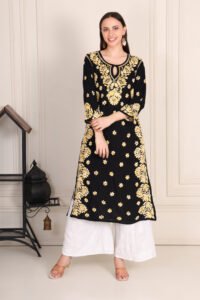Current price is: ₹1 Exquisite Lakhnawi Kurti in modal to adore your wardrobe. Available in 38, 40, 42, 44, 46 sizes.