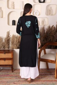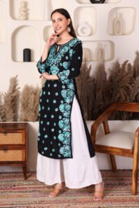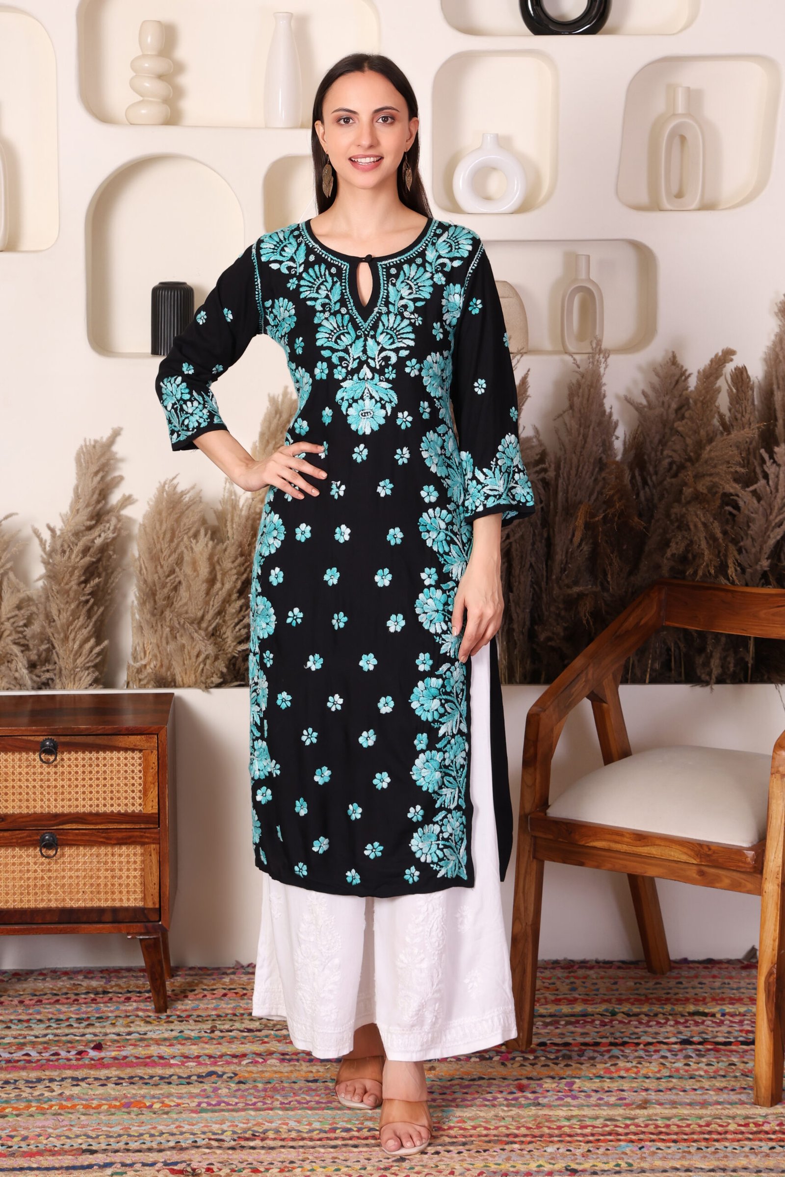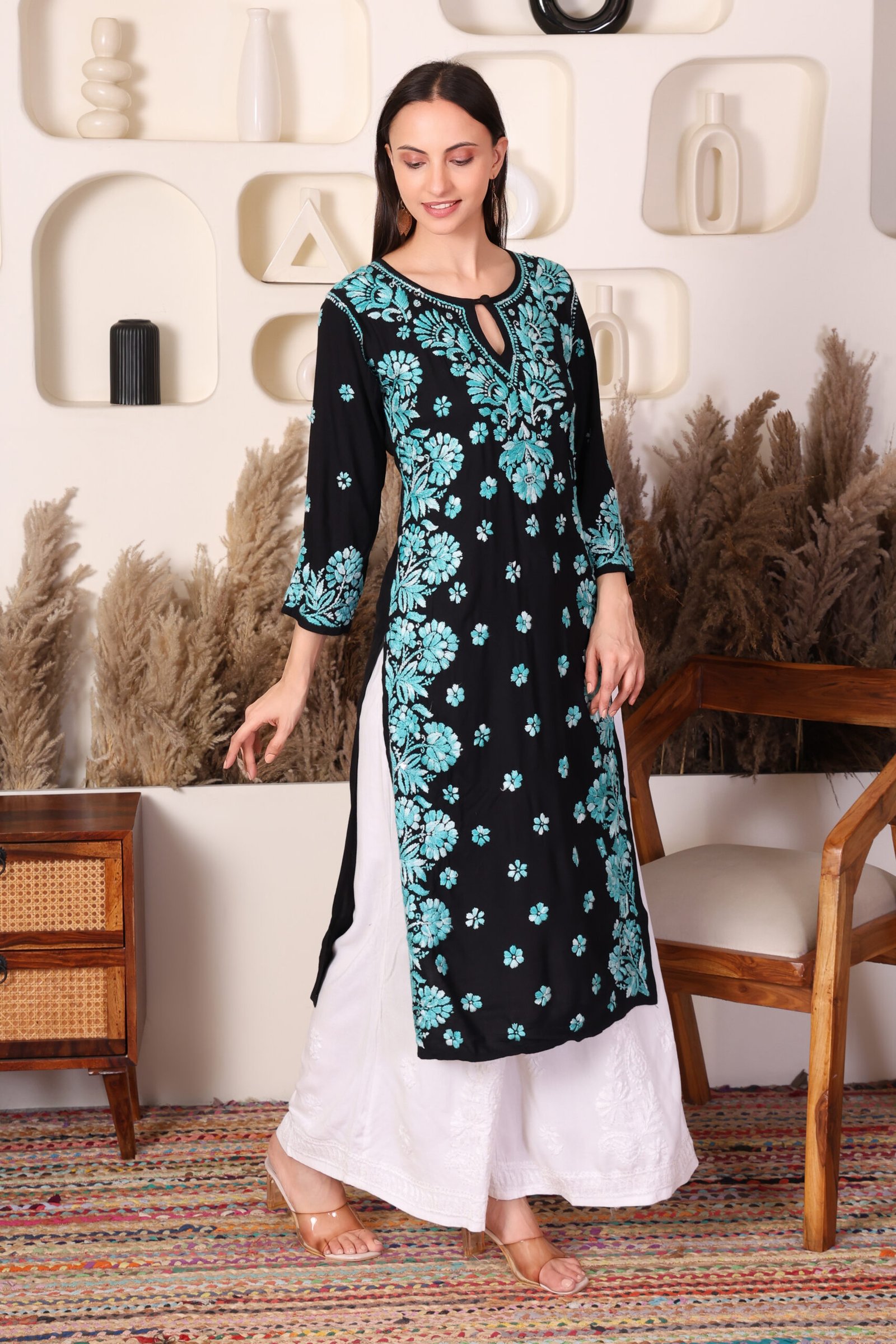 Exquisite Lakhnawi Kurti in fine modal to adore your wardrobe. Available in 38, 40, 42, 44, 46 sizes.