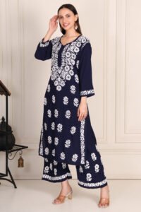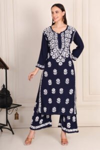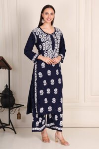 chikankari suit black with white trarad work size 38.40.42.44.46