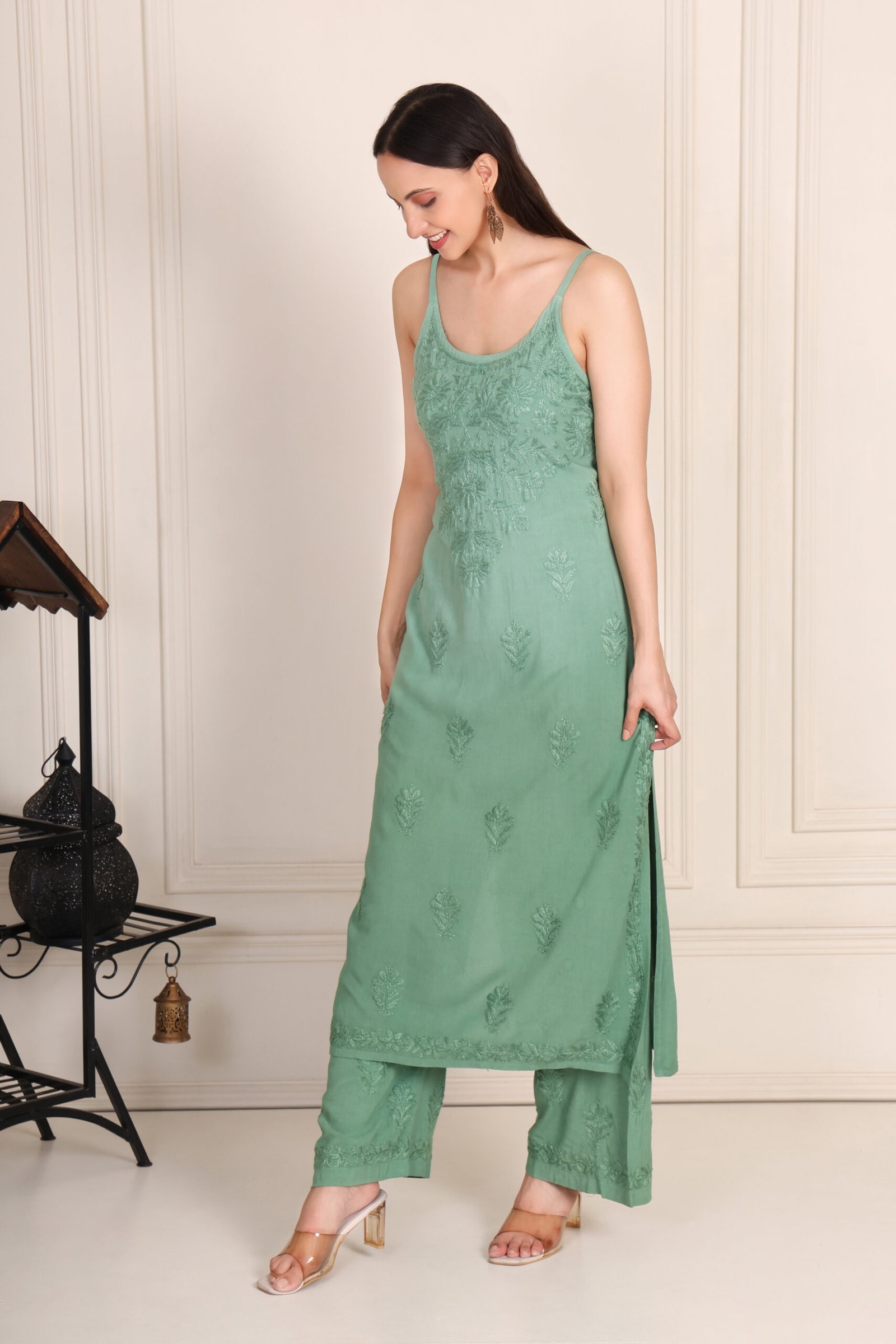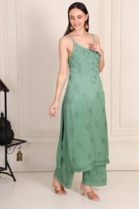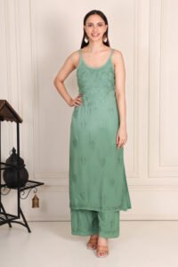 chikankari suit with stripe