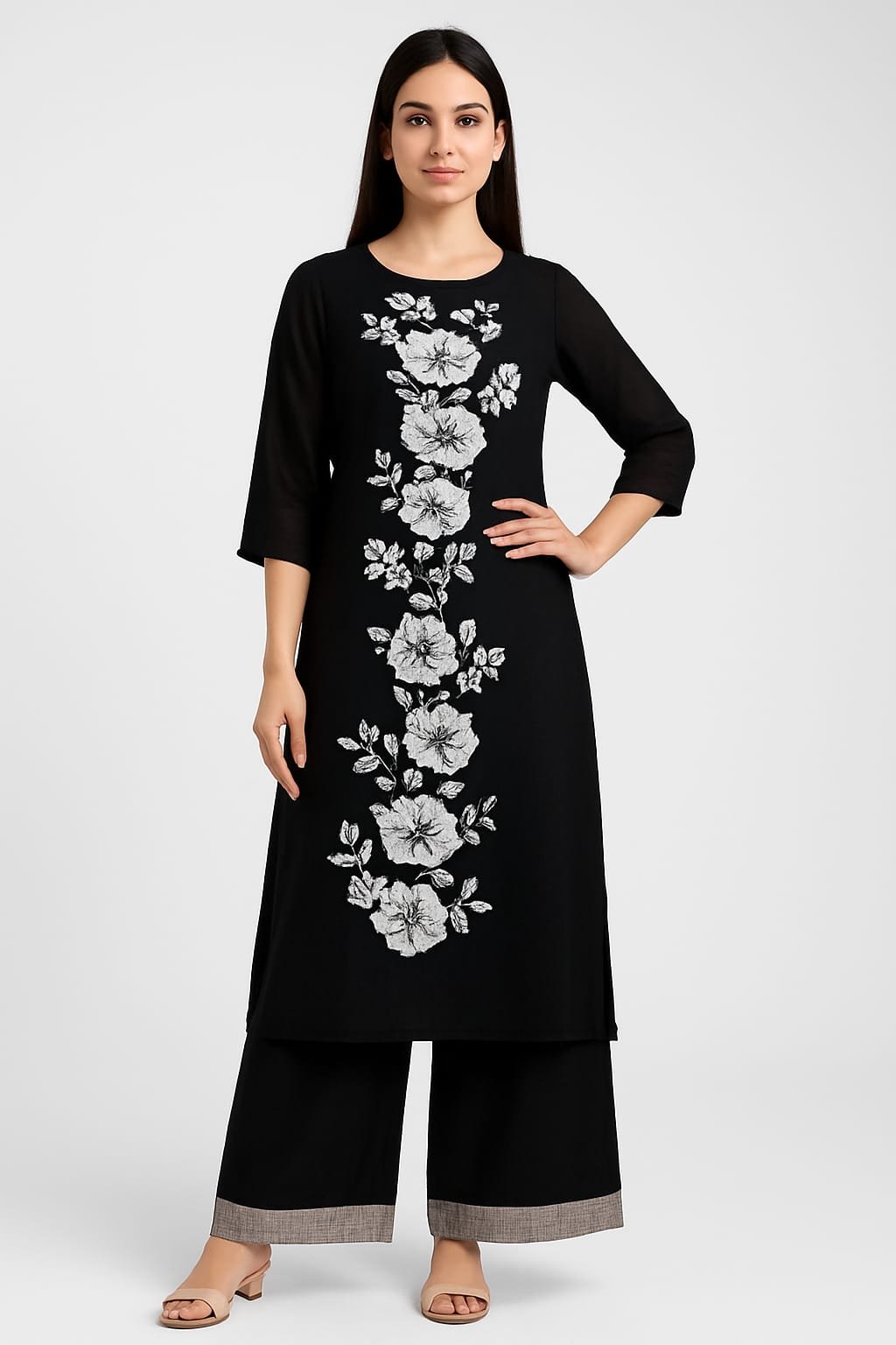 floral embroidered beads and stones gerogette kurta with plazo size M,L,XL,XXL,